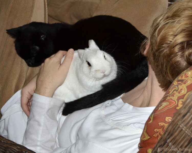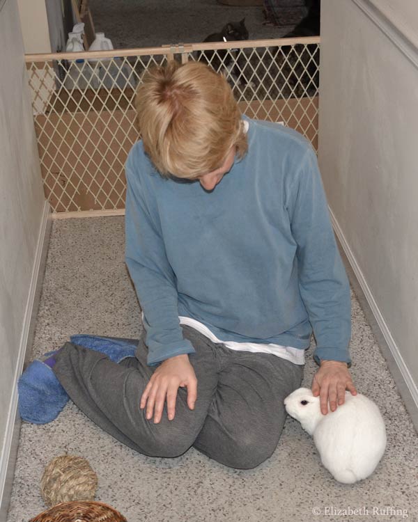 Oliver Bunny prefers to play with toilet paper rolls. I have saved a ridiculous number of these. If anyone stops by, they are going to think we use an awful lot of toilet paper.